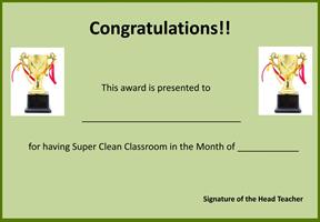 1. Continued Student Involvement: The Eco Club will remain active, with rotating leadership roles for students, ensuring that new members take on responsibilities and keep the initiative fresh. Regular meetings will keep students engaged and remind them of their ongoing roles in maintaining cleanliness. 2. Rewards: The "Super Clean Classroom Award" will continue, with regular updates to keep the competition engaging. Small, meaningful rewards (like certificates or a celebratory event) will be given to the winning classes to maintain motivation. 3. Integration into School Culture: Cleanliness will be integrated into the school’s core values, with regular awareness campaigns and workshops on hygiene and environmental responsibility for new students.